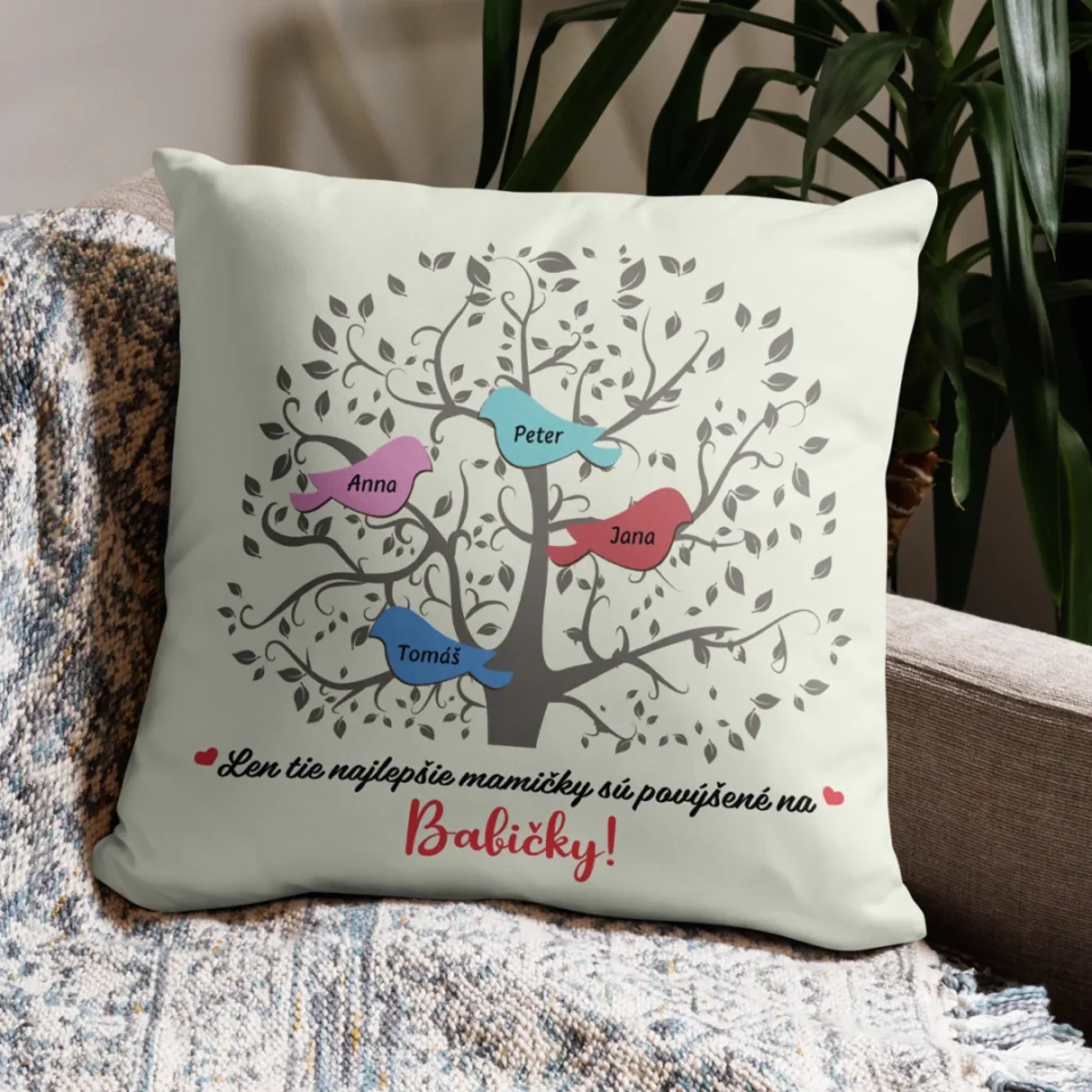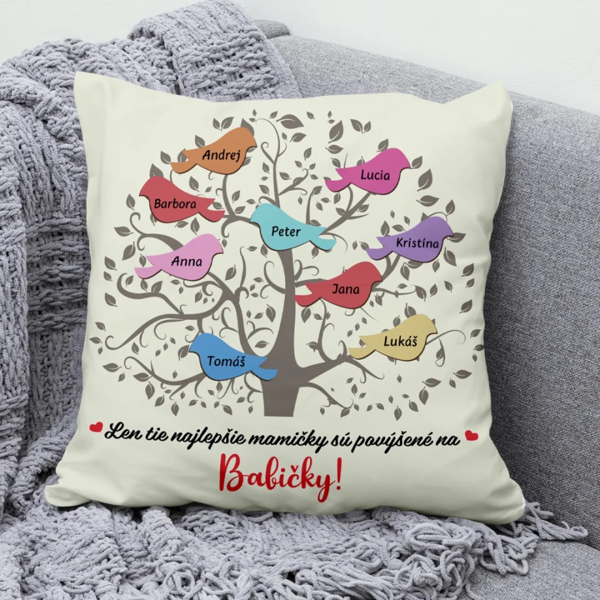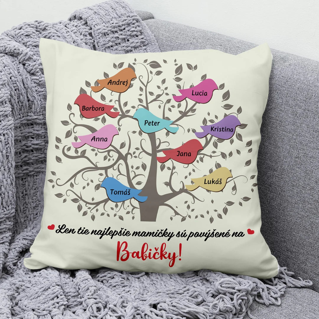 Jedinečný vankúš pre babičky - babičkine vtáčiky